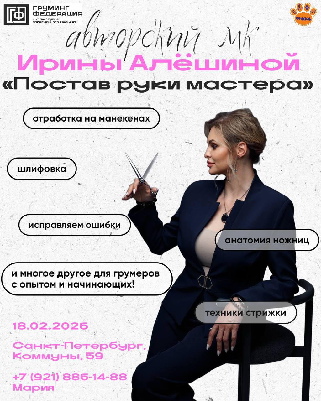 🏢Мастер-класс пройдёт в Зоосалоне Фокс по адресу: СПб, ул. Коммуны, 59